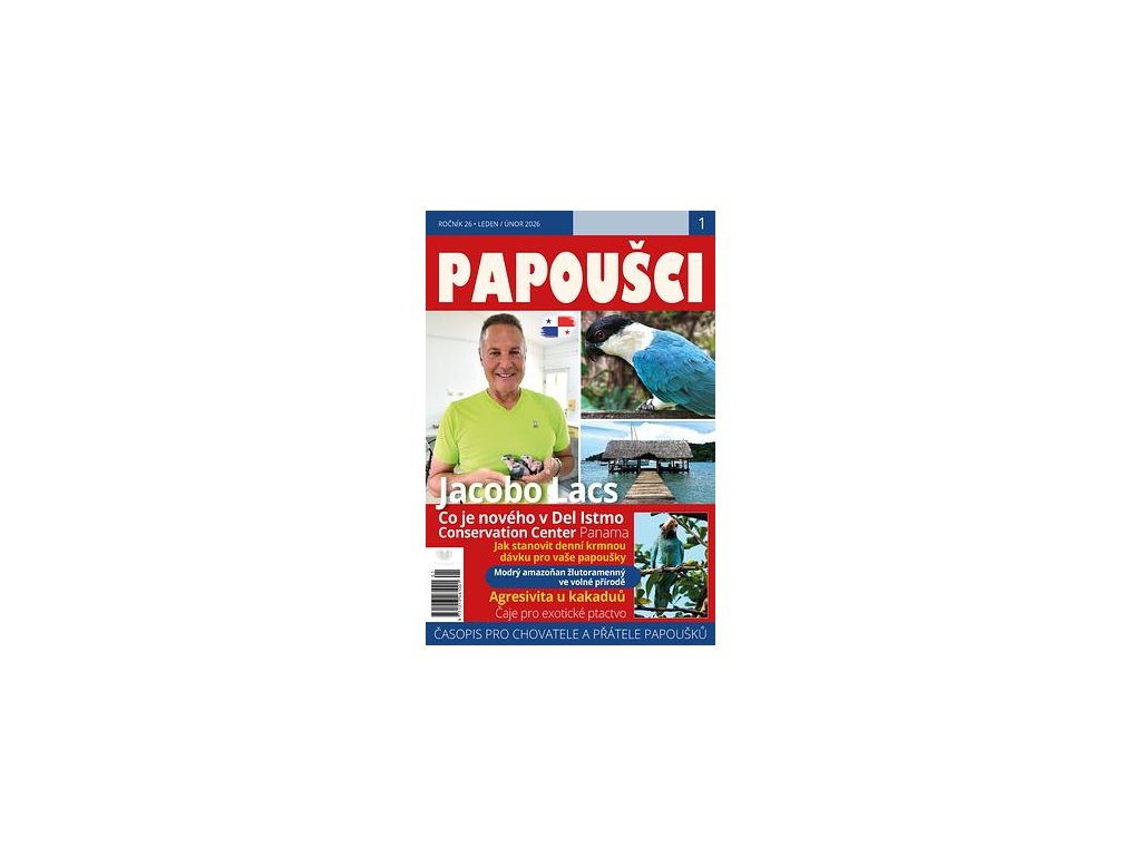 Papoušci č.1 - leden/unor 2026. Časopis PAPOUŠCI je jediným českým specializovaným periodikem zaměřeným pouze na papoušky. V jednotlivých rubrikách si přečtete zajímavé informace o praktickém chovu papoušků, výživě a krmení, chovu mutací, ručním odchovu, voliérách nebo nemocech papoušků. Najdete zde i články o papoušcích – domácích mazlíčcích, informace ze života papoušků ve volné přírodě nebo reference o činnostech nadací, které podporují projekty pro ochranu papoušků.