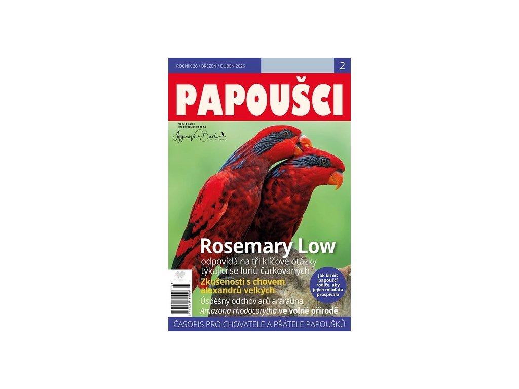 Papoušci č.2 - březem/duben 2026. Časopis PAPOUŠCI je jediným českým specializovaným periodikem zaměřeným pouze na papoušky. V jednotlivých rubrikách si přečtete zajímavé informace o praktickém chovu papoušků, výživě a krmení, chovu mutací, ručním odchovu, voliérách nebo nemocech papoušků. Najdete zde i články o papoušcích – domácích mazlíčcích, informace ze života papoušků ve volné přírodě nebo reference o činnostech nadací, které podporují projekty pro ochranu papoušků.
