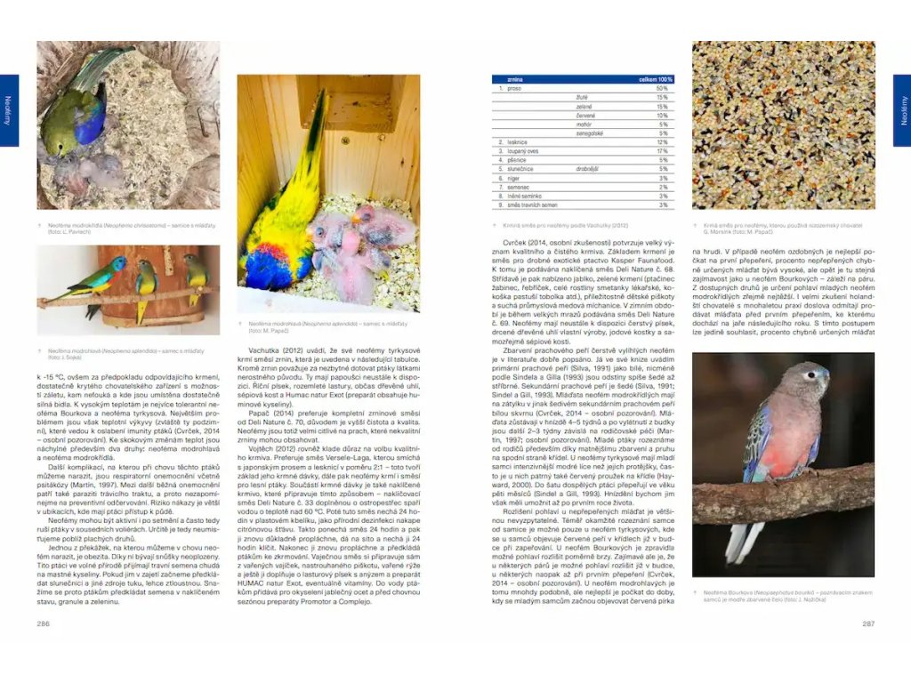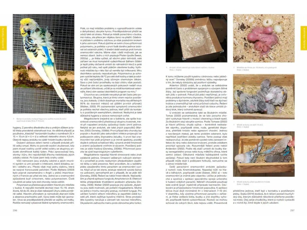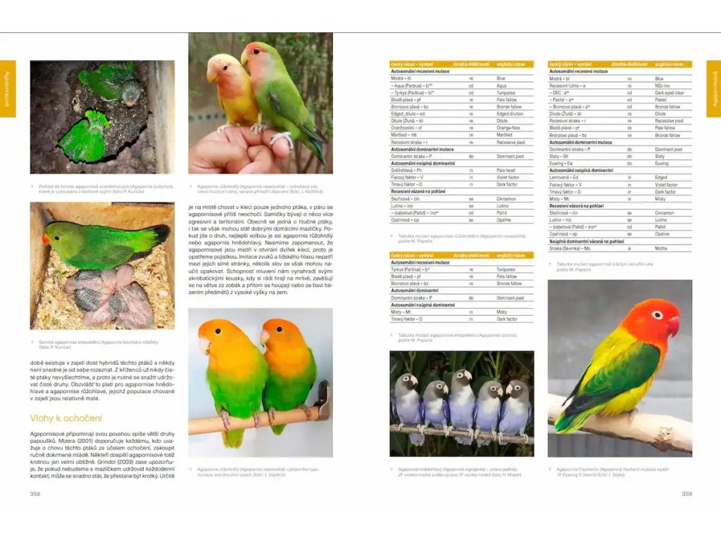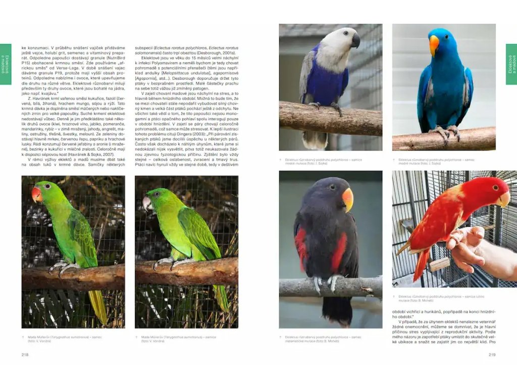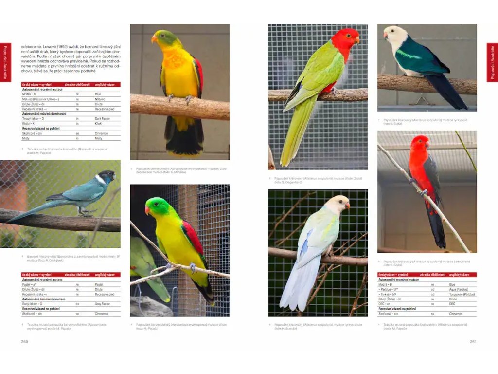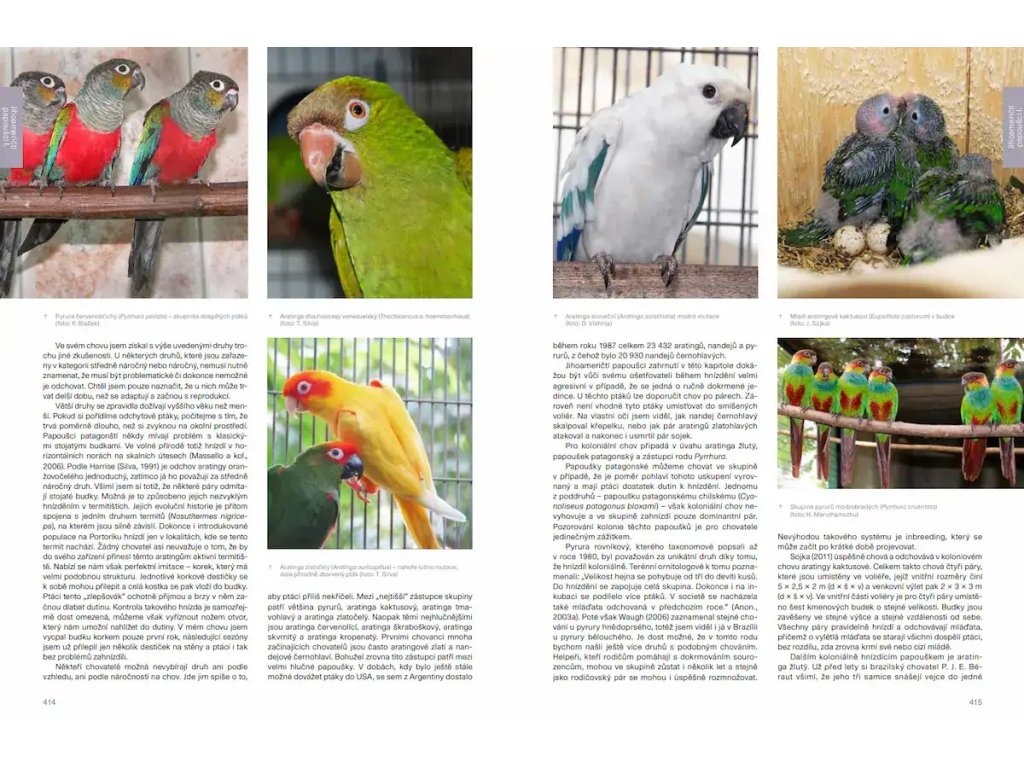 Formát A4, 512 stran, přes 850 fotografií papoušků, chovatelského zařízení, krmení apod.
