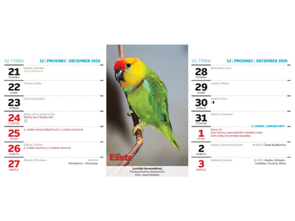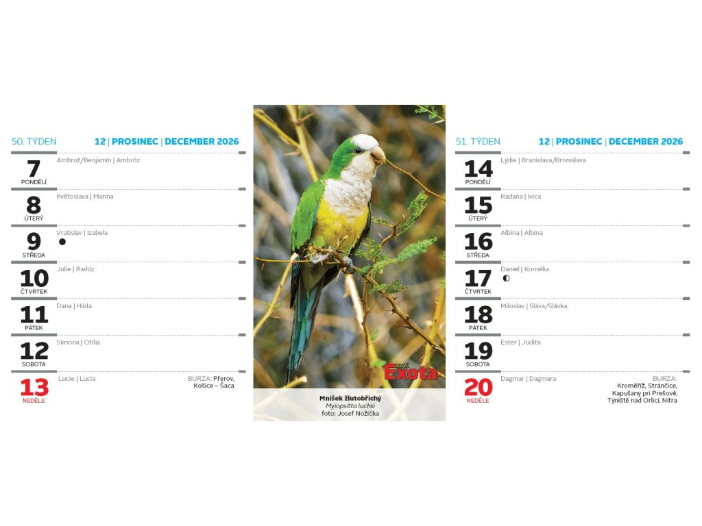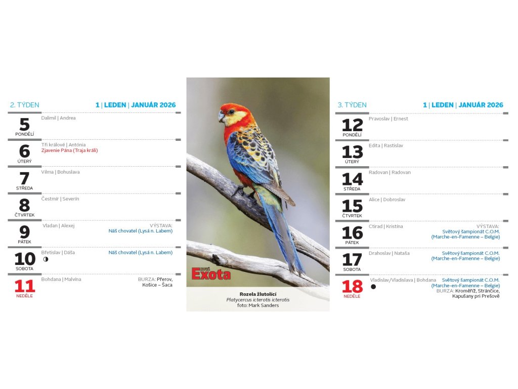 Čtrnáctidenní stolní kalendář Nová Exota 2026